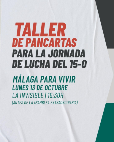 El lunes 13 de octubre nos vemos a las 16:30h en La Casa Invisible para hacer un taller de pancartas y preparar la Jornada de Lucha del 15 de Octubre por Palestina.