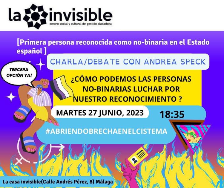 Te invitamos a la charla/debate "¿Como podemos las personas no-binarias luchar por nuestro reconociendo?" con ANDREA SPECK