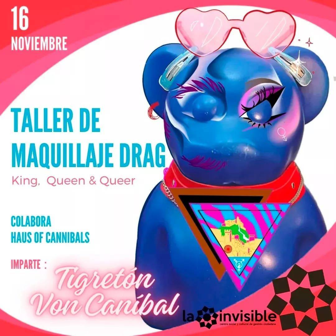 Orgullo crítico Málaga y la Haus of cannibal presentan este taller de maquillaje Drag (king, queen y queer!) con motivo de potenciar la escena malagueña, el auto-descubrimiento y la autoestima y la educación anticapacitista - La recaudación integra será destinada para cubrir costes de un taller de la activista Itxi Guerra.