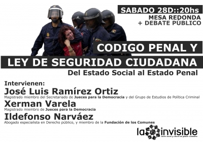 Para analizar estas cuestiones contaremos con la presencia de José Luis Ramírez Ortiz, magistrado miembro del Secretariado de Jueces para la Democracia y del Grupo de Estudios de Política Criminal;Xerman Varela, miembro de Jueces para la Democracia y de Ildefonso Narváez Baena, abogado especialista en Derecho público, y miembro de la Fundación de los Comunes.