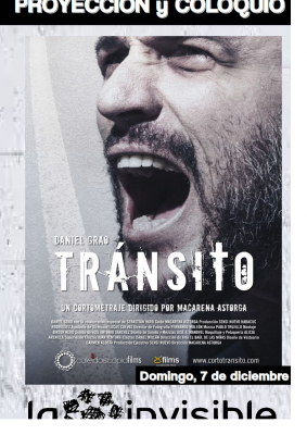 Este domingo hacemos un parón en nuestro ciclo de documentales con temática política para proyectar Tránsito, un cortometraje de Macarena Astorga. El corto cuenta ya con varios premios entre los cuales podemos destacar la Biznaga de Plata en el Festival de Cine de Málaga y el RTVA al mejor guión andaluz, además de su participación en la 28 edición de los Premios Goya.