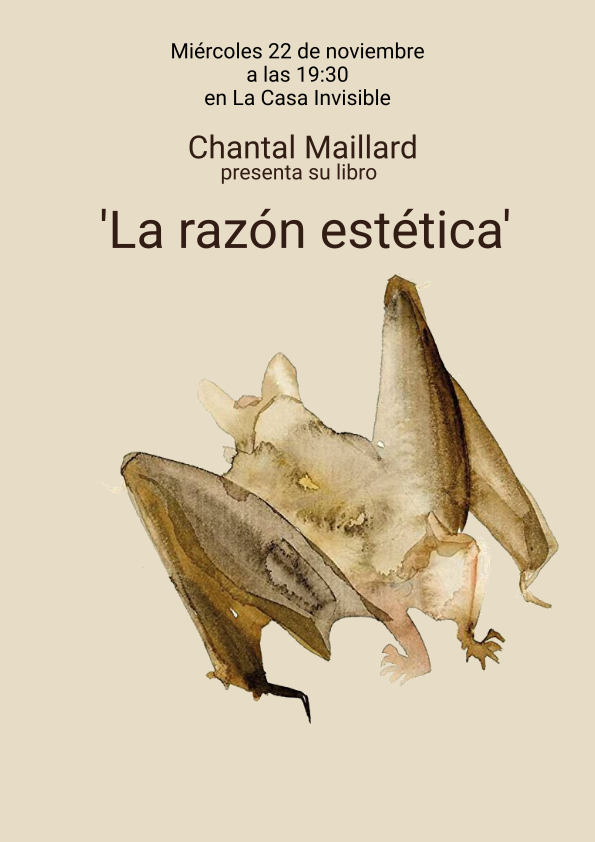 Chantal Maillard presenta su libro 'La razón estética' el miércoles 22 a las 19:30. Poeta malagueña, doctora en Filosofía Pura vivió un tiempo en Benarés, India, en cuya Universidad se especializó en Filosofía y Religión India. Fue profesora de Estética y Teoría de las Artes en el Departamento de Filosofía de la Universidad de Málaga. En 2004 obtuvo el Premio Nacional de Poesía por Matar a Platón. En 2008 el Premio Nacional de la Crítica por Hilos.