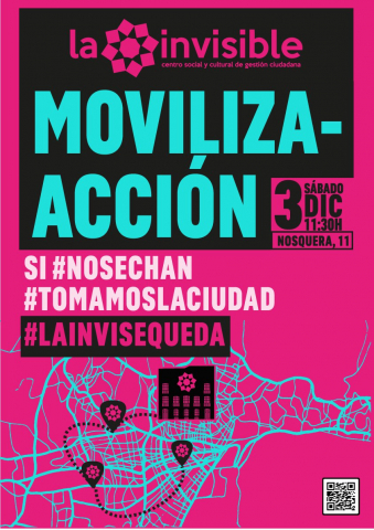 ¡Nos vemos el día 3 de diciembre! El Ayuntamiento de Málaga persiste en su voluntad de desalojar la Casa Invisible. Frente a ello, el próximo sábado 3 de diciembre convocamos a una jornada de reivindicación festiva para defender juntas la Invisible. Acude a la puerta de C/ Nosquera 9-11 a las 11.30 h. Desde ahí, iremos a tres puntos clave del centro donde… ¡habrá sorpresas!