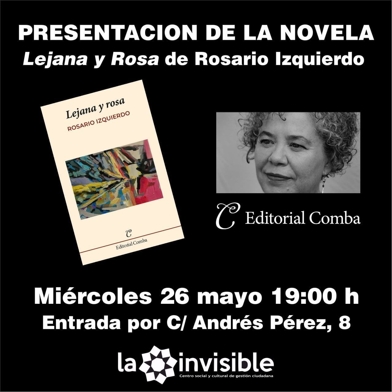 Rosario Izquierdo presenta en La Invisible su libro "Lejana y rosa" en una conversación con Santi Fernández Patón.