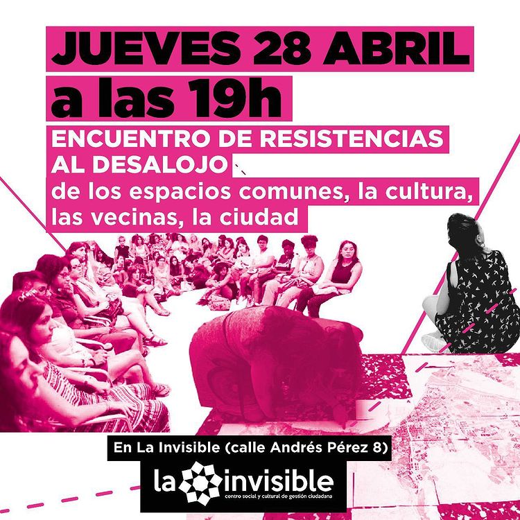 La amenaza de desalojo que se cierne sobre La Invisible es la misma que conocen multitud de creadores y creadoras locales sin espacios de producción y muestra; el mismo que conocen las vecinas desplazadas por la destrucción del centro histórico y la especulación de los alquileres... Y así podríamos seguir largo rato.