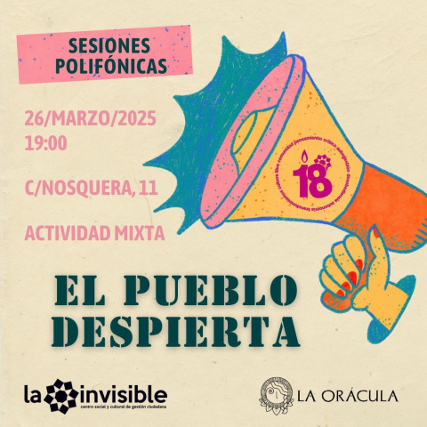 Así que después de la hibernación y de resistir el frío y las lluvias: EL PUEBLO DESPIERTA. Y, mientras el centro se nos llena de photocalls y guiris en chanclas, nosotres nos preparamos para hablar de RESISTENCIA, ANTIFASCISMO Y DERECHO A LA CIUDAD.